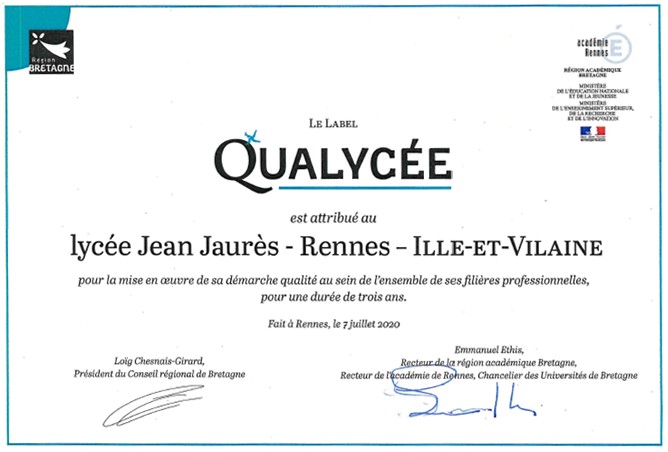 Le lycée Jean Jaurès a obtenu la labellisation Qualycée en 2014 pour une durée de 3 ans et conservée en 2017.