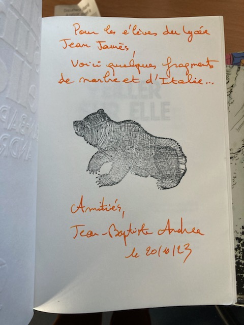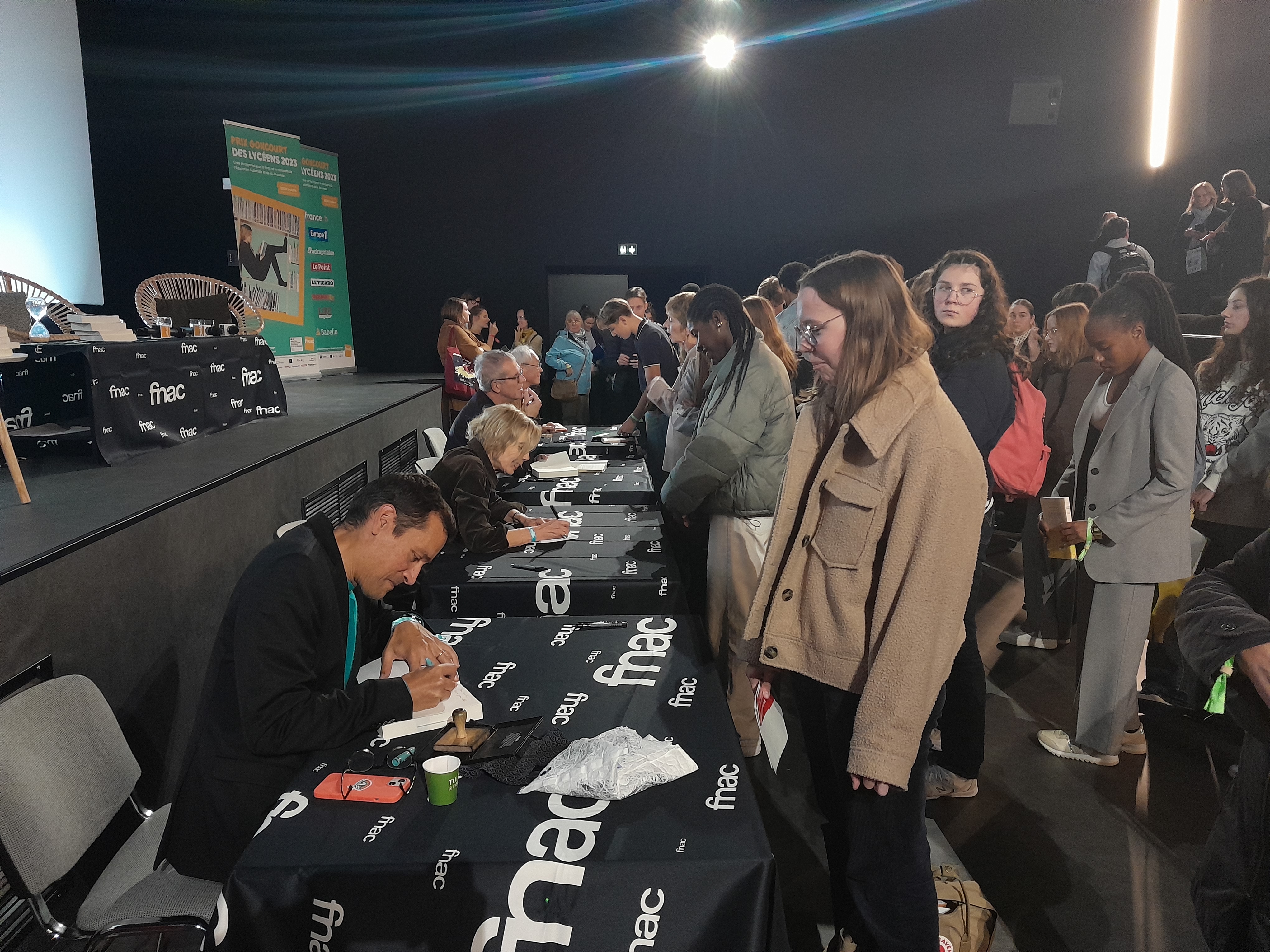 Séance de dédicaces par l'auteur Jean-Baptiste Andrea, gagnant du prix Goncourt 2023.