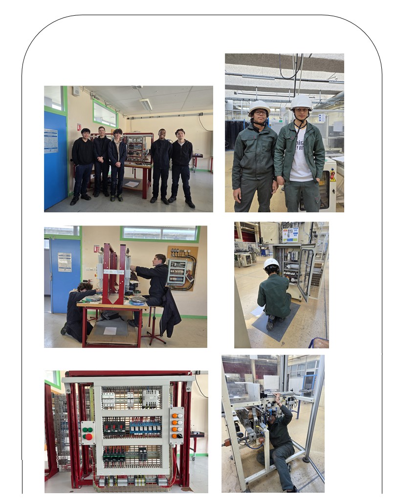 L’après-midi a été consacré à la méthodologie de lecture de schémas et à des travaux pratiques de câblage (colonne OKKEN, platine d’entraînement, peigne et borniers). Les élèves ont pu mettre en application les consignes professionnelles en situation réelle.